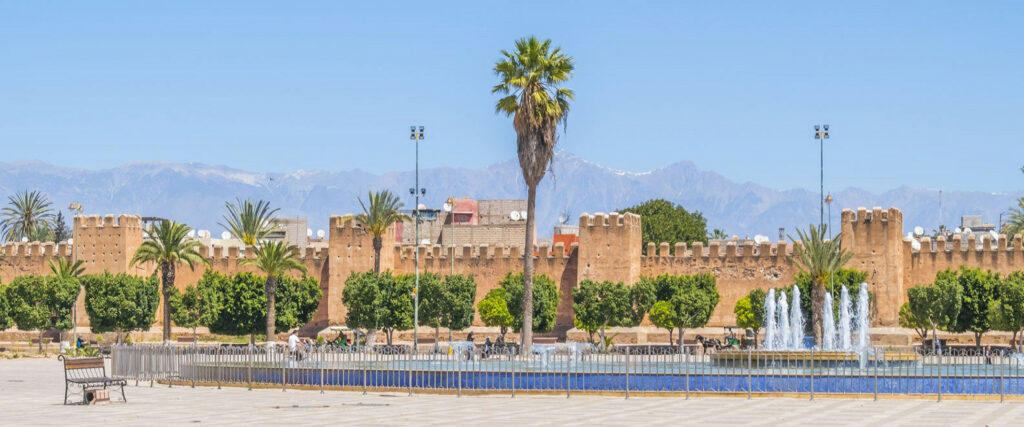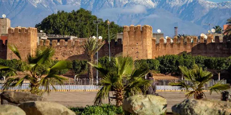 Taroudant est le « petit Marrakech » en raison de ses remparts de terre rouge, avec en toile de fond, les cimes enneigées du haut Atlas, visite de la ville et des souks traditionnels et du Palais Salam.