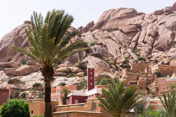 Tafraout est une petite ville entourée d’une myriade de rochers de formes diverses se dressant au-dessus d’une palmeraie qui abrite des arganiers et des plantations d’arganiers et d’oliviers. Au printemps la vallée de Tafraout offre un spectacle magnifique lorsque les arganiers sont en fleurs. Les habitants Chleuh ou Ichelhiyen de la vallée de Tafraout cultivent les céréales et de multiples arbres fruitiers dont les arganiers. Tafrout signifie « la ruche » en Berbère. De jolis paysages en granit rose à découvrir dans l’arrière-pays où l’on peut pratiquer le canyoning, mais aussi une petite ville très typique avec des souks traditionnels.